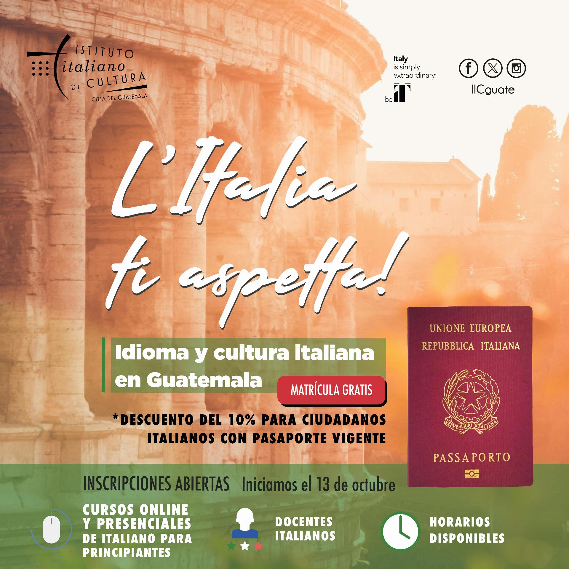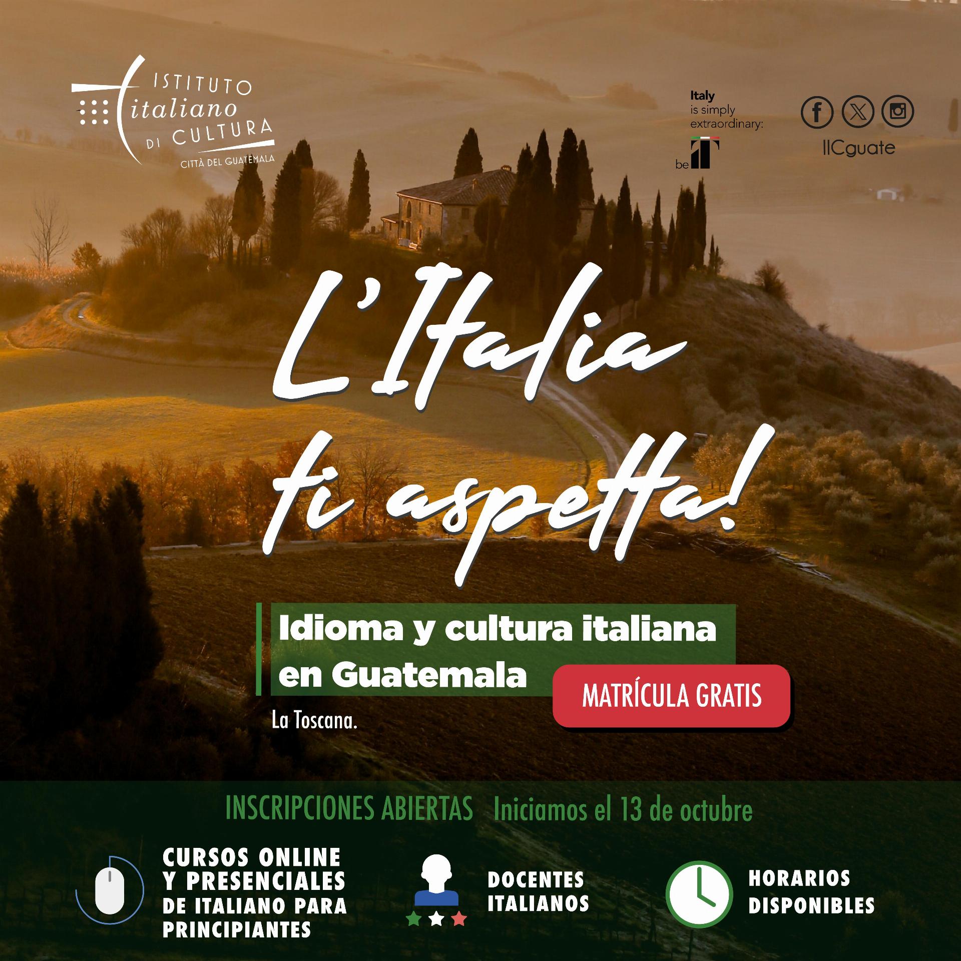 È possibile organizzare lezioni private individuali o di gruppo, presso l’Istituto o in sede esterna, a qualsiasi livello. Per maggiori informazioni, scrivere a cursos.iicguatemala@esteri.it o telefonare al numero (+502) 2366 8394/96.